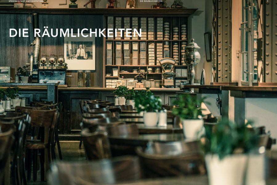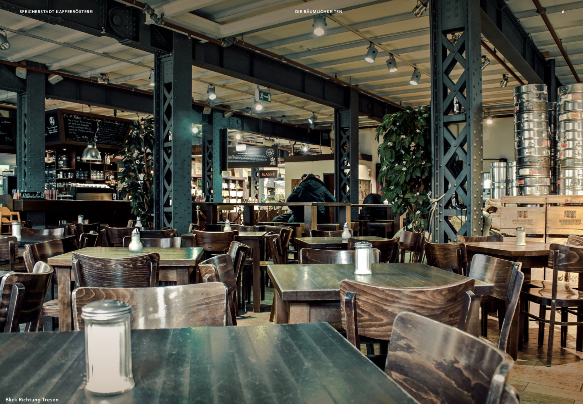 Der Kaffee-Speicher liegt im Herzen der historischen Speicherstadt und wurde 2006 als inhabergeführte Privatrösterei eröffnet. Das 1888 erbaute und denkmalgeschützte Backsteingebäude und die Inneneinrichtung verleihen der Location einen ganz besonderen, industriellen Charakter. Mit zahlreichen Säulen, dem originalen Eichendielenboden und den alten Kaffeemühlen- und röstanlagen im Inneren entsteht ein Ambiente mit historischem hamburgischen Flair. Die Räumlichkeiten mit ihrem einzigartigen Blick auf die Speicherstadt zeigen Hamburg von seiner schönsten Seite. Die Veranstaltungsräume lassen sich individuell einrichten und ermöglichen so die Ausrichtung verschiedener Eventformate. Dabei finden bis zu 150 Personen in der Location Platz.