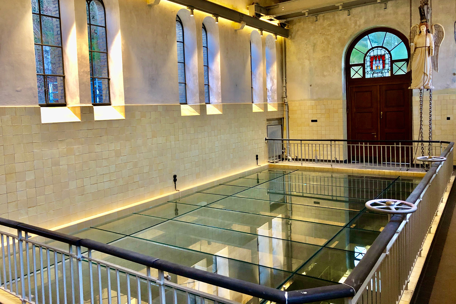 Im ehemaligen Pumpwerk der Wasserwerke am Falkensteiner Ufer ist eine Eventlocation entstanden, wie sie es so in Hamburg noch nicht gab. Auf dem ca. 10.000 qm großen Grund inmitten der schönsten Elblandschaft wurde das 1859 erbaute Ensemble rund 50 Jahre nach der letzten Nutzung in eine Location mit großzügigen Lofts und Ateliers, sowie einem privatem Museum umgebaut. Mit viel Gespür für die Verbindung von vorhandener Substanz und einer zeitgemäßen Architektursprache sind vielseitige Nutzungsmöglichkeiten entstanden, in denen jeder Gast sein persönliches Highlight findet. Dafür sorgen unter anderem Elemente der Inneneinrichtung, deren Charakter aus den alten Tagen einer Fabrikanlage erhalten blieb.